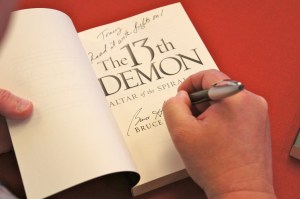 My debut novel, “The 13th Demon: Altar of the Spiral Eye” is available this week and my launch party is Friday night, October 7th, 2011 from 6 to 8 P.M. at Brookwood Baptist Church (corner of I49 and Bert Kouns) in the Well, the coffee shop. I will be introducing the ink*well, a regional Christian artists’ community and speaking briefly on “One Book’s Journey: How to Get Published”. Those who purchase a book are entered into a drawing for one of the following: an Ipad2, a nook touch, and a Kindle WiFi. Coffee and snacks are complementary. You can take a look at the flyer by clicking on: bruce-flyer