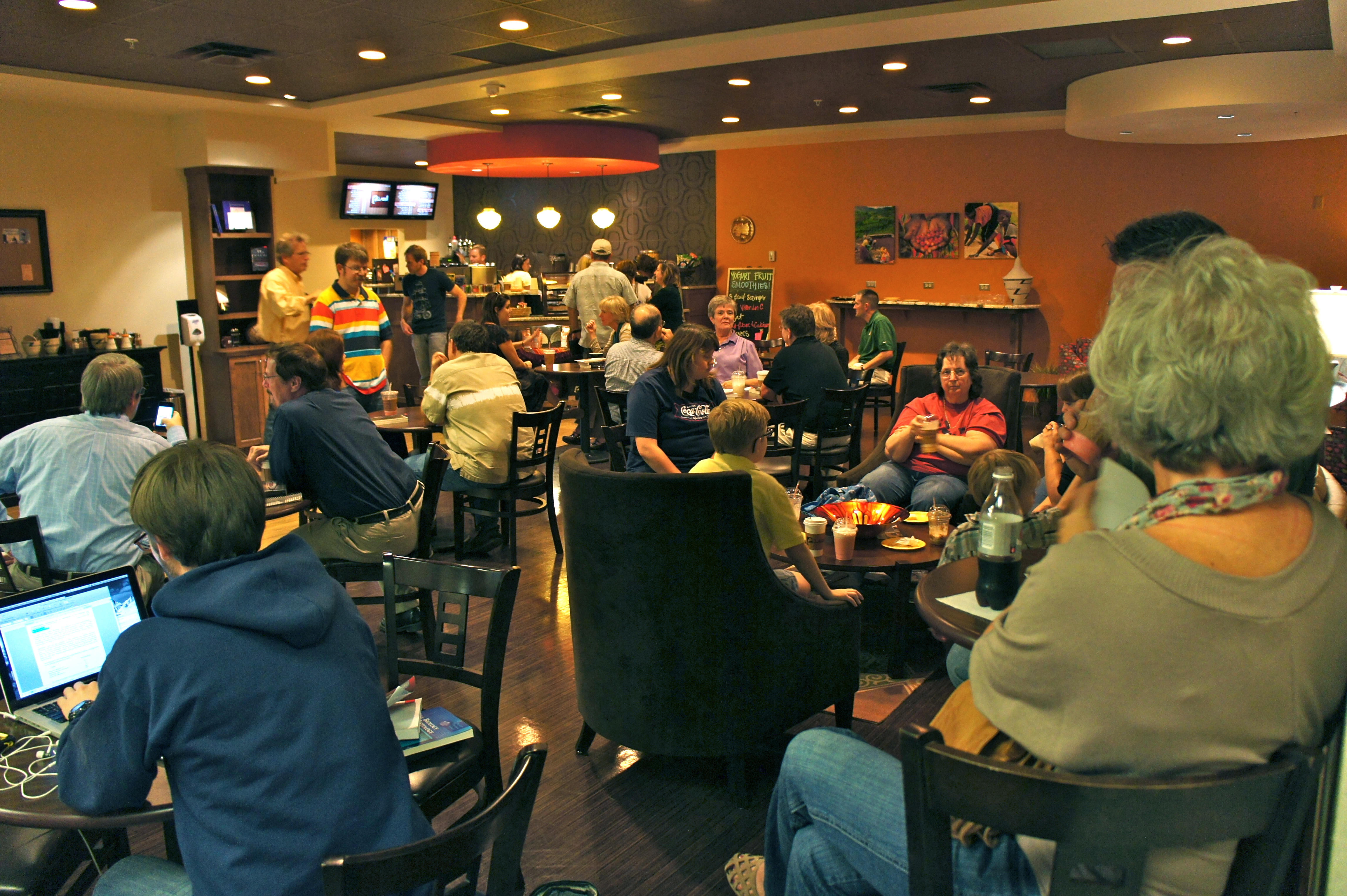 I didn’t advertise the heck out of my book launch. I wanted it to be cozy and have a couple of dozen people show up. I planed it for our coffee shop, the Well, as one of their Friday night Events. But, over 100 people showed up and I signed 91 books! I consider that an amazing response. I want to thank all my friends who showed up to kick off the release of “The 13th Demon: Altar of the Spiral Eye”. The evening started with the book signing followed by my introduction of the ink*well. Then we drew cards for prizes: an iPad2, a Nook touch, a Kindle, and two book collections for aspiring writers as well as a few of my new tee shirts.