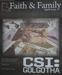 I am writing the lead article in April’s Faith & Family Magazine available throughout the ArkLaTex on “CSI Golgotha”.