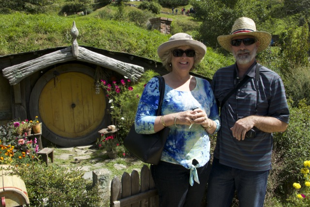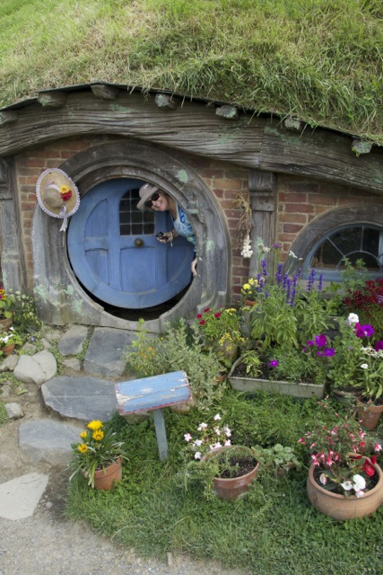 We stopped in Waitomo and toured two caves, one with the famous glow worm grotto. I’ll come back to that later because I want to move on to Wednesday (Tuesday American time) because I spent the most wonderful two hours with hobbits. Yes, with hobbits!